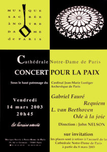 Et nous organisons un concert gratuit exceptionnel pour la Paix, en quelques jours dans des conditions folles. Tatiana obtient l’accord de son ami le cardinal Lustiger ; trois jours plus tard, 150 musiciens jouent bénévolement devant plus de 3 000 personnes à Notre-Dame de Paris !